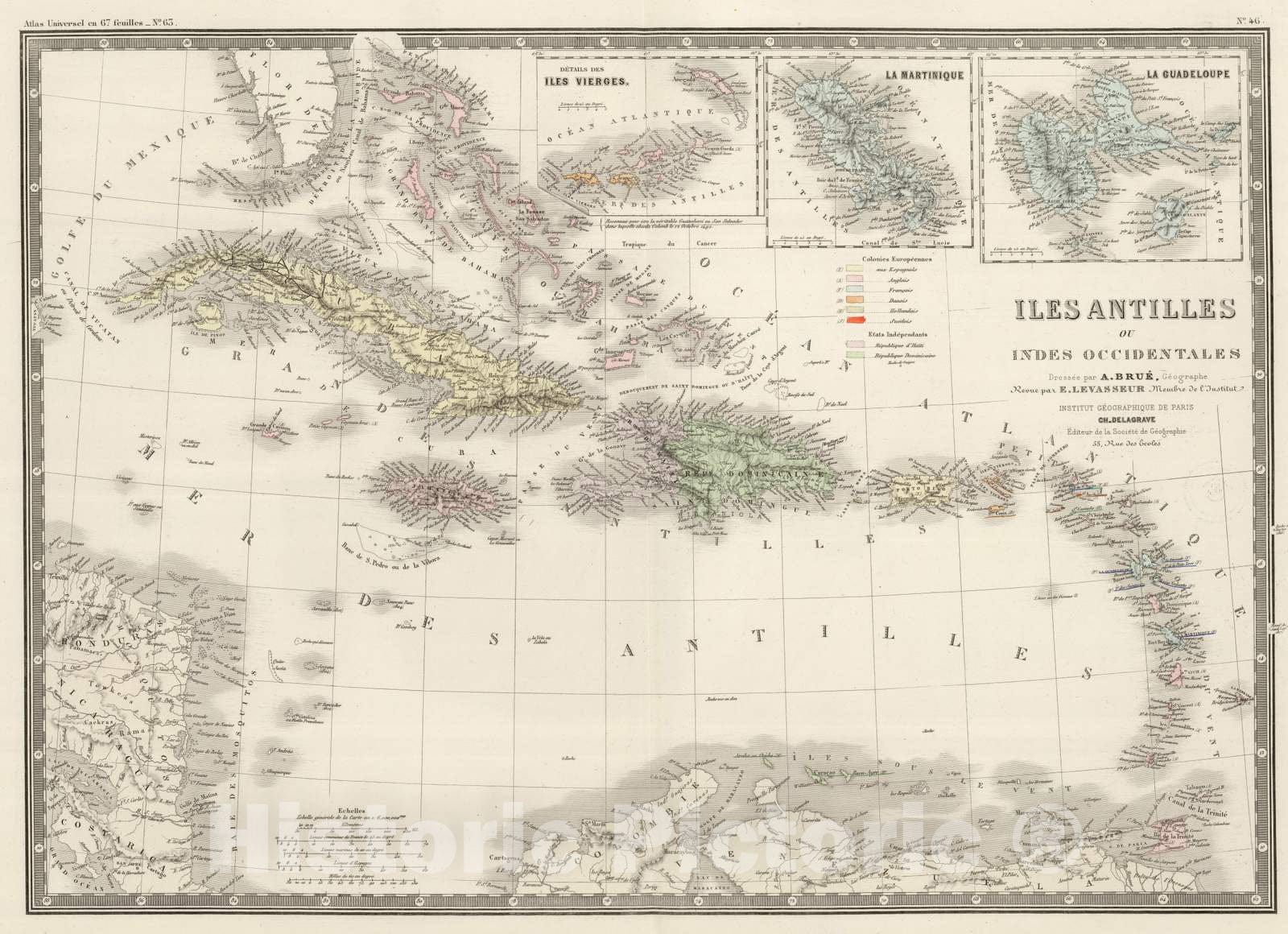 Historic Map : Cuba; Dominican Republic; Haiti; Trinidad, Antilles, West Indies 1875 Iles Antilles, Indes Occidentales. , Vintage Wall Art