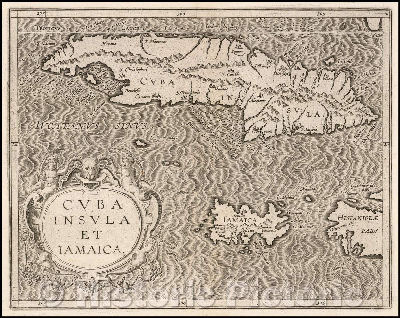 Historic Map - Cuba Insula Et Iamaica/Et Island winter Cuba (Cayman Islands includes), 1597, Cornelis van Wytfliet - Vintage Wall Art