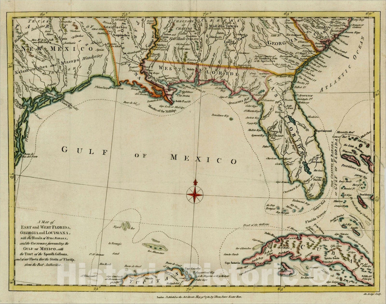 A Map of East and West Florida, Georgia and Louisiana, with the Islands of Cuba, Bahama, and the Countries surrounding the Gulf of Mexico, 1781