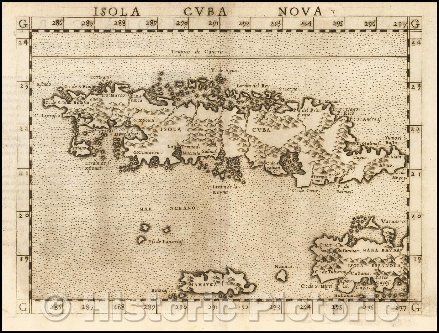 • .Historic Map - Isola Cuba Nova/Cuba Nova Island, 1561, Girolamo Ruscelli - Vintage Wall Art