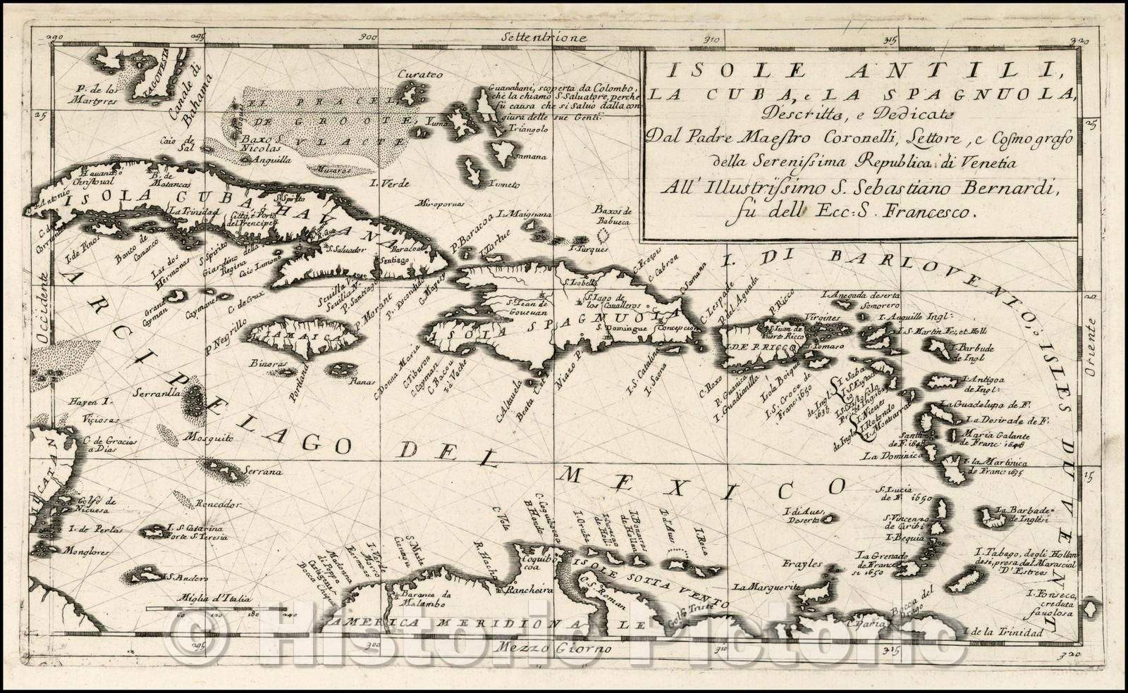 Isole Antili, La Cuba, La Spagnuola, Descrtitte e Dedicato Dal Padre Maestro Coronelli, 1690, Vincenzo Maria Coronelli