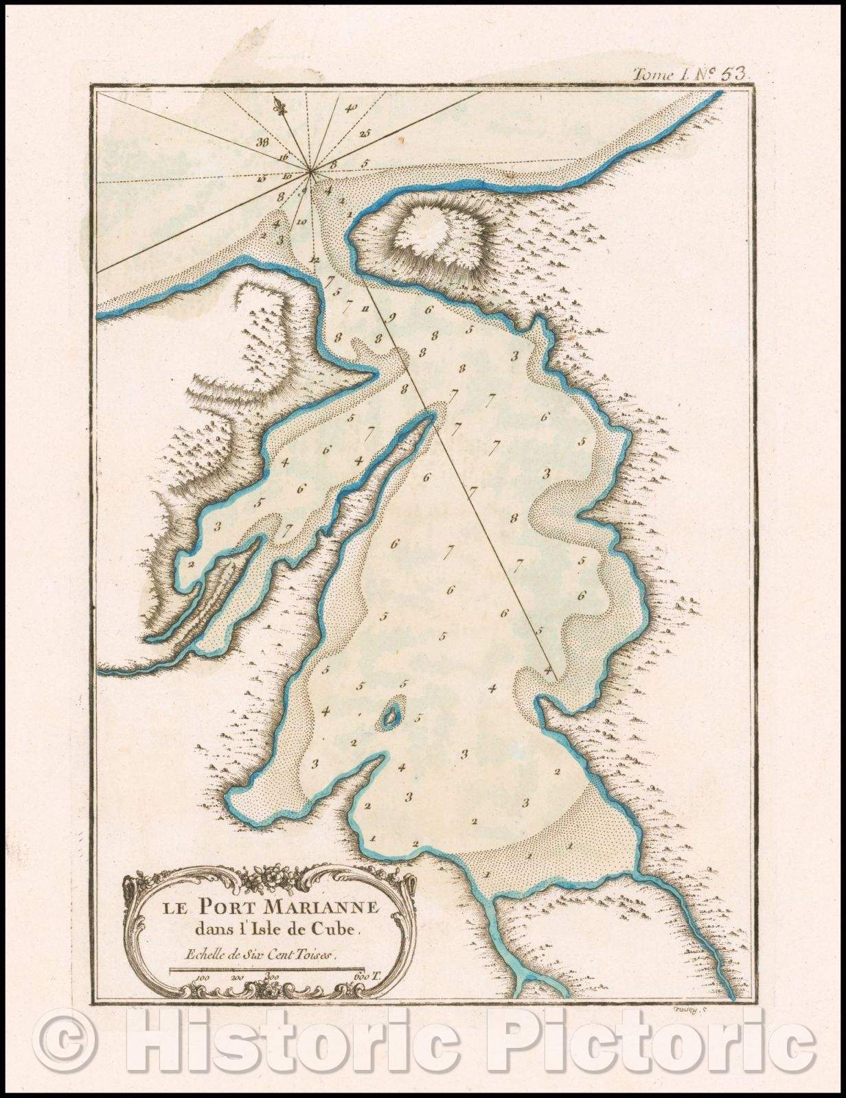 Historic Map - Le Port Marianne dans l'Isle de Cube/Engraved Map of Mariel Bay on the Northwest Coast of Cuba, 1764, Jacques Nicolas Bellin - Vintage Wall Art