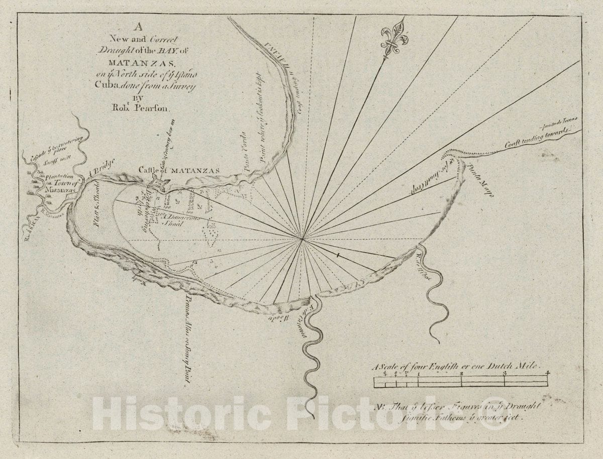 Historic Map : A New and Correct Draught of the Bay of Matanzas. On ye North side of ye Island Cuba, done from a Survey by Robt. Pearson., 1732, Thomas Page, Vintage Wall Art