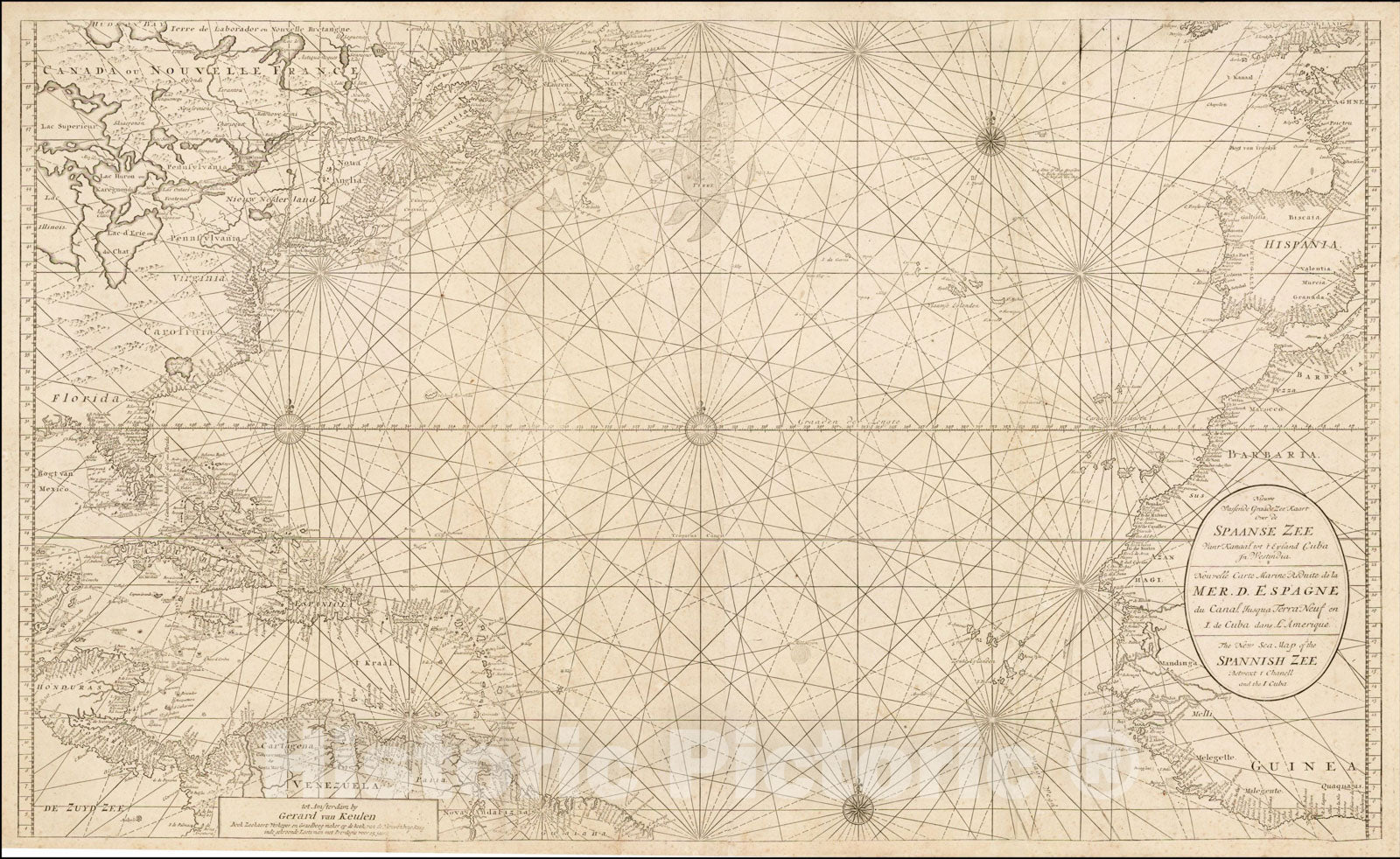 Historic Map : Nieuwe Wassende Graade Zee Kaart over de Spaanse Zee Vant Kanaal tot 't Eyland Cuba In Westindia, 1726, Gerard Van Keulen, Vintage Wall Art