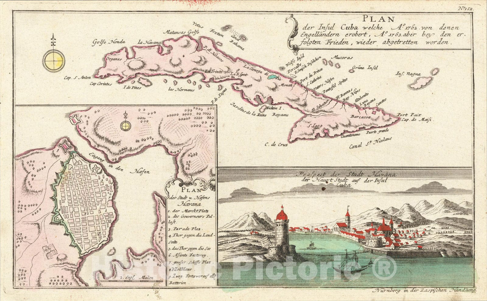Plan der Insul Cuba welche ao. 1762 von denen Engellandern erobert, 1765, Gabriel Nikolaus Raspe