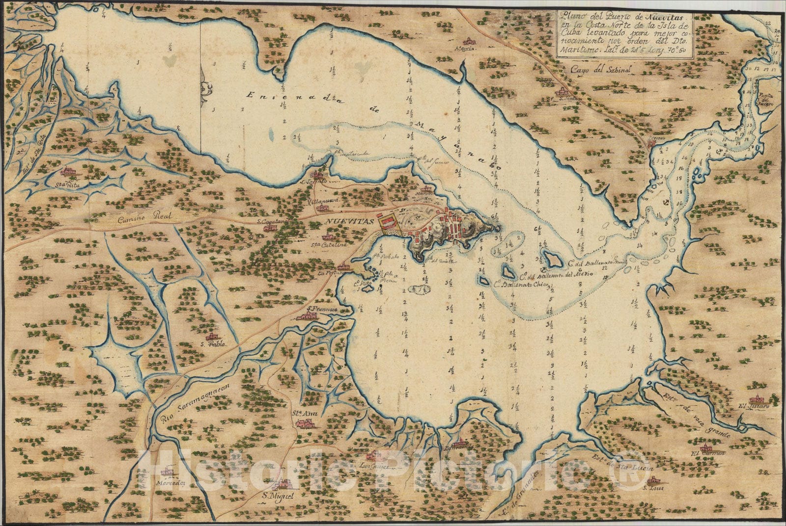 Historic Map : Plano del Puerto de Nuevitas en la Costa Norte de la Isla de Cuba, c1828, Anonymous, Vintage Wall Art