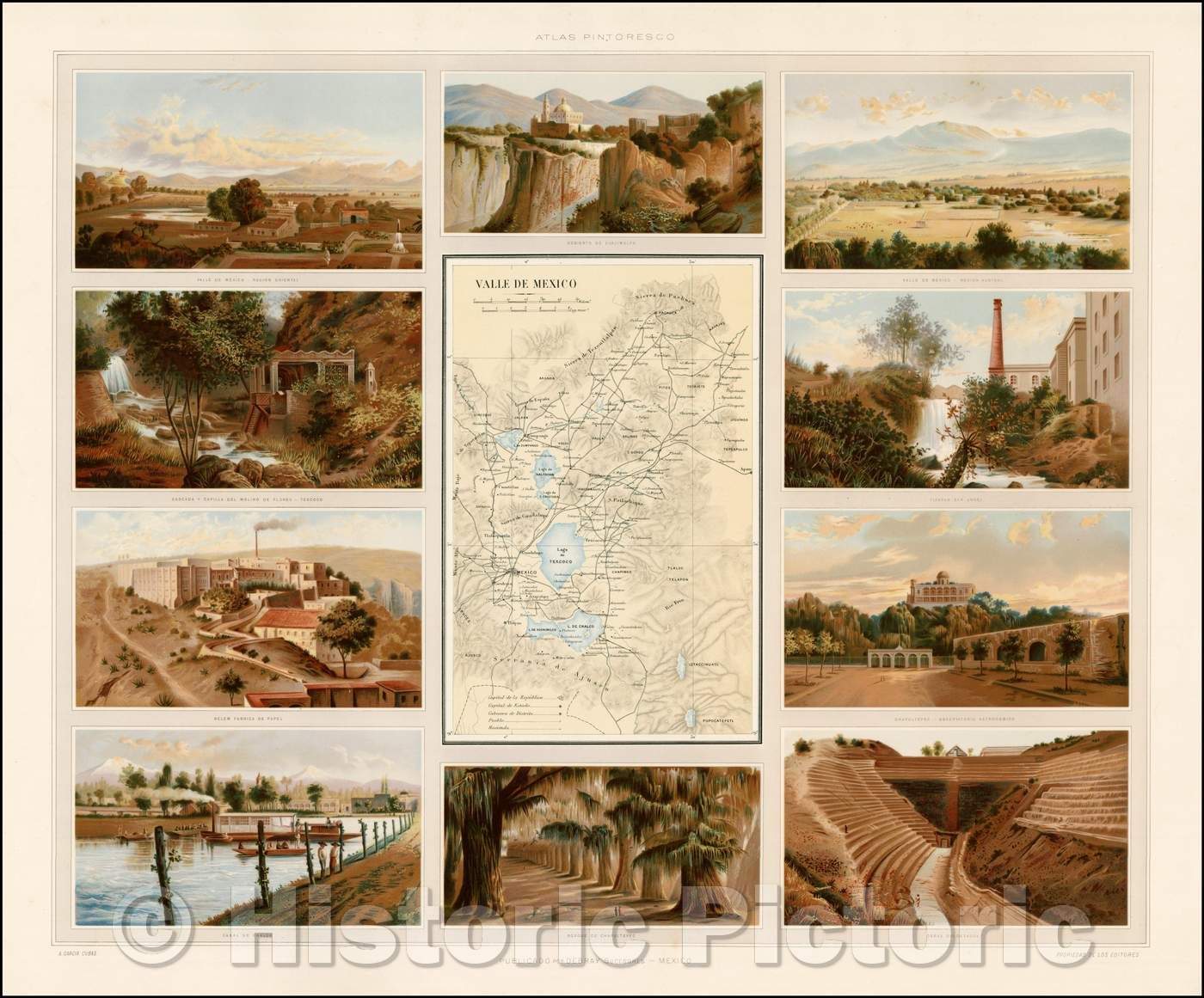 Historic Map - Valle De Mexico/Map the Valley of Mexico, 1885, Antonio Garcia y Cubas - Vintage Wall Art