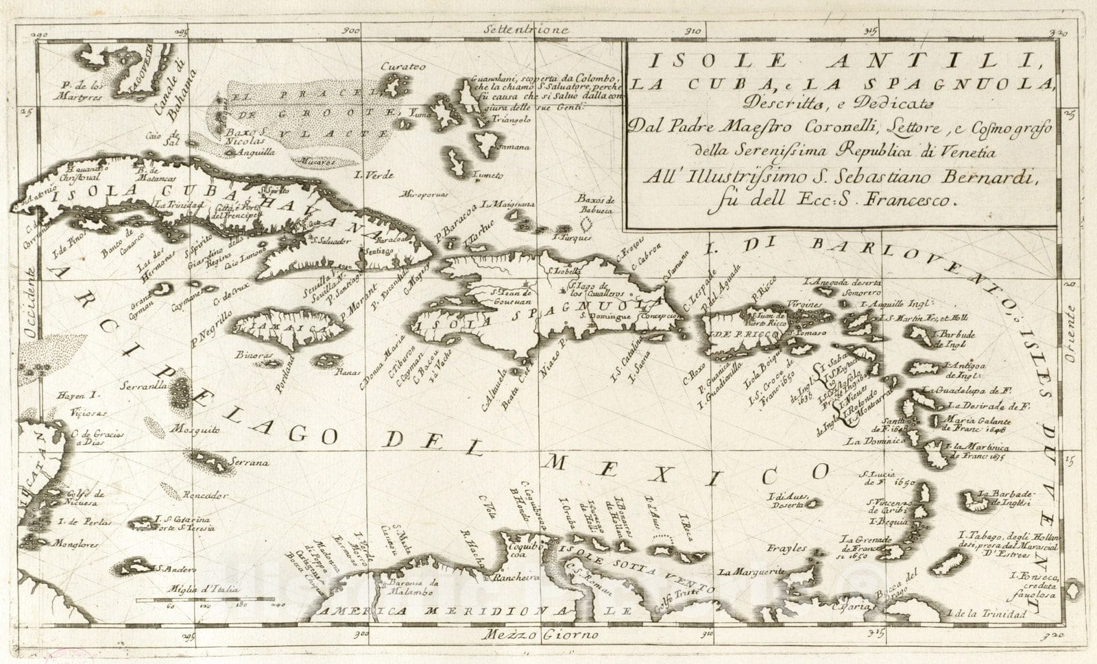 Historical Map, 1697 Isole Antili, la Cuba, la Spagnuola, Vintage Wall Art