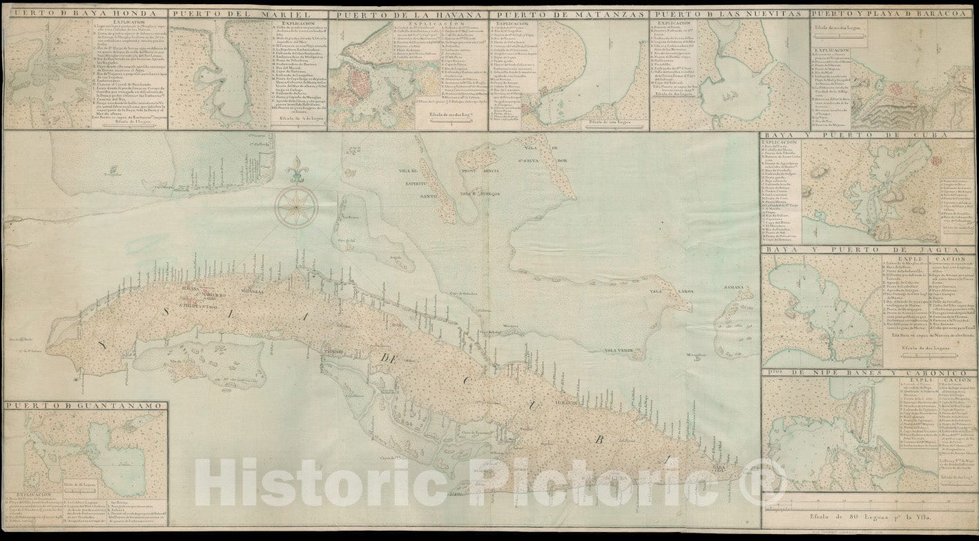 • .Historical Map, 1770 Ysla de Cuba, Vintage Wall Art