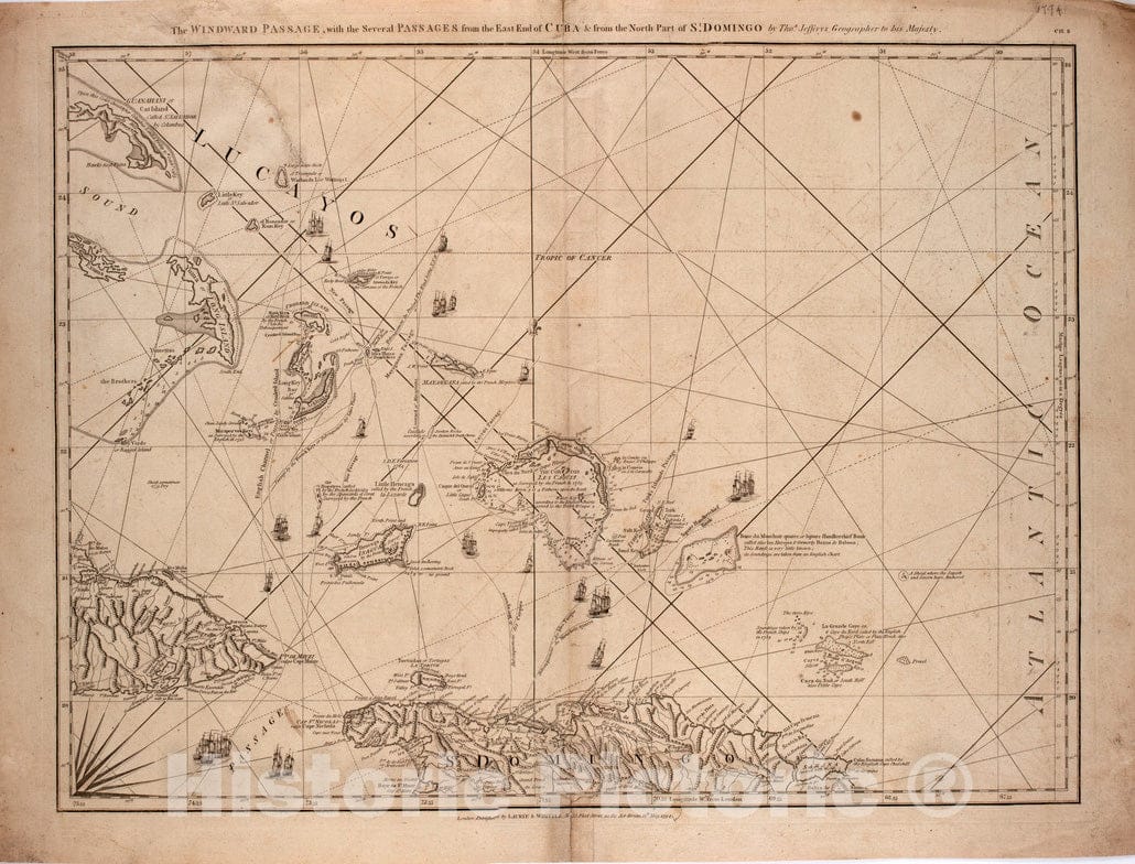 • .Historical Map, 1794 The Windward Passage, with The Several passages from The East end of Cuba : & from The North Part of St. Domingo, Vintage Wall Art