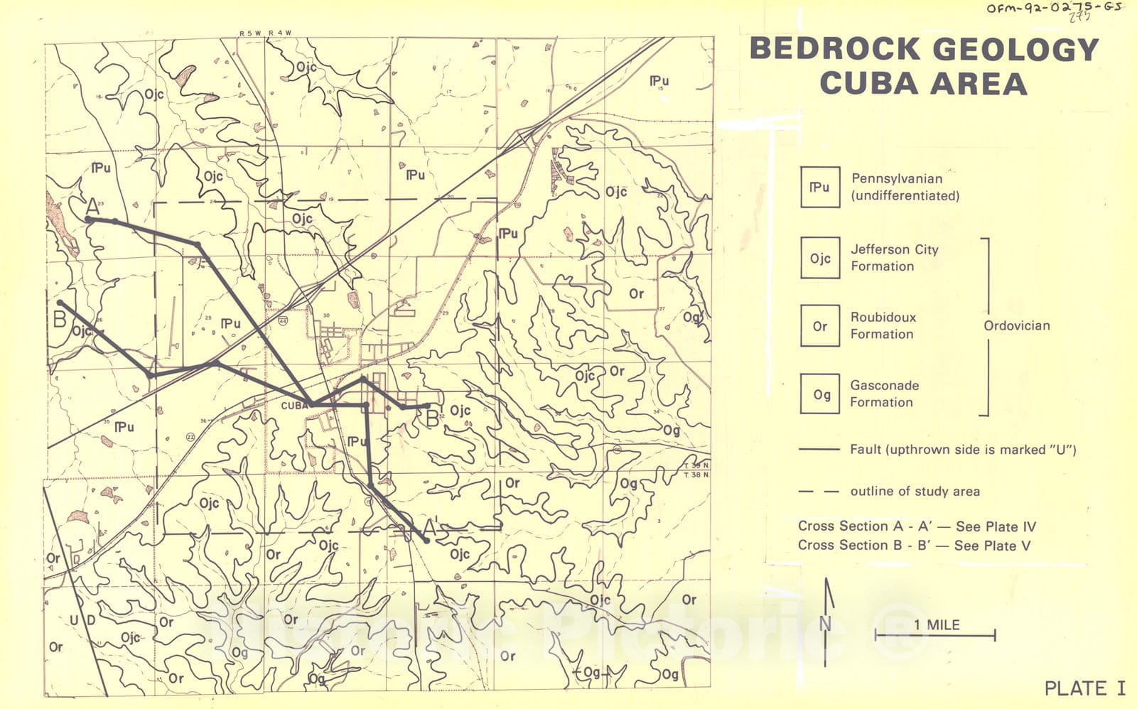 Map : Bedrock geology, Cuba area, Missouri, 1992 Cartography Wall Art :