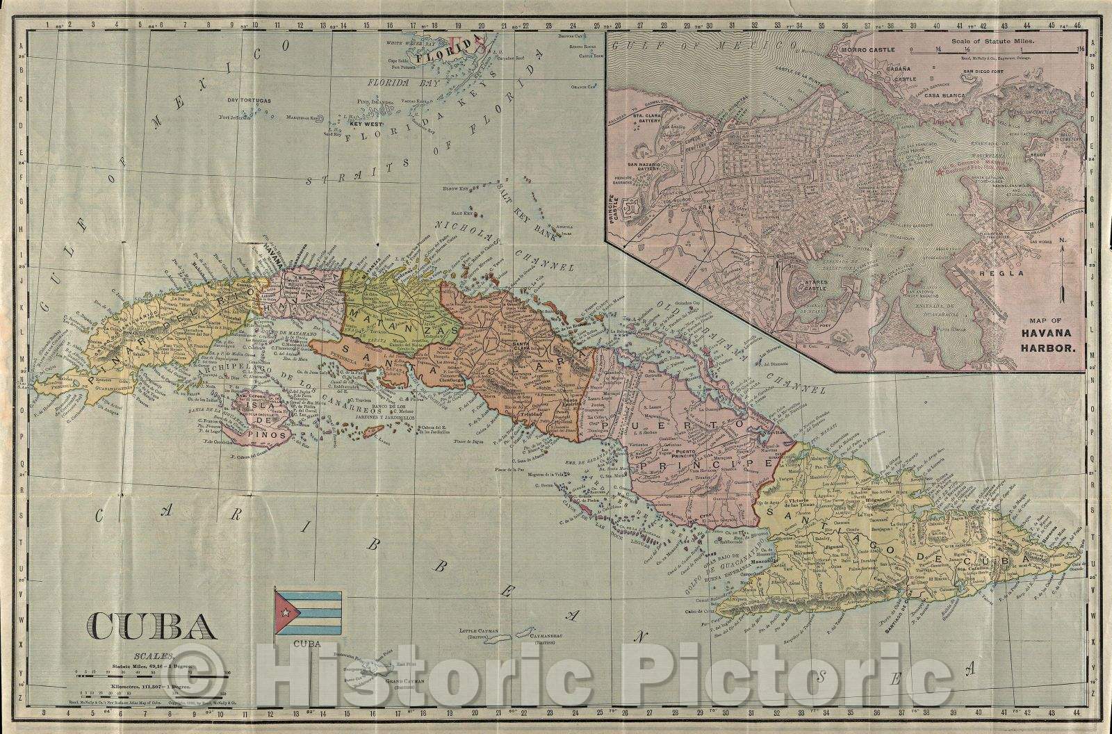 Historic Map : Cuba, 1898 , Vintage Wall Art