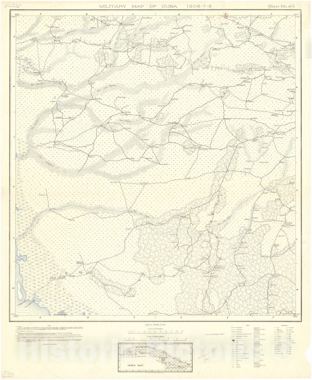 Map : Cuba 1906 100, Military map of Cuba , Antique Vintage Reproduction
