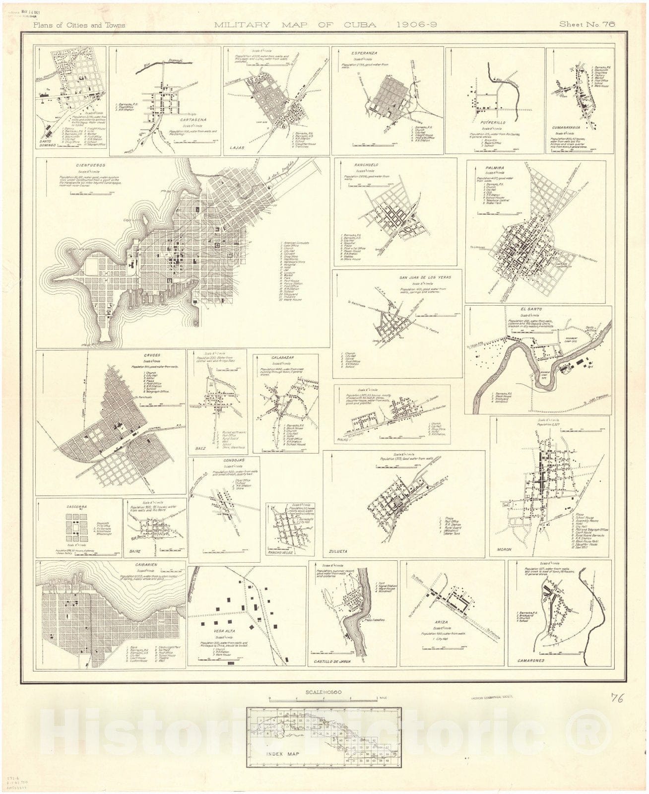 Map : Cuba 1906 7, Military map of Cuba , Antique Vintage Reproduction