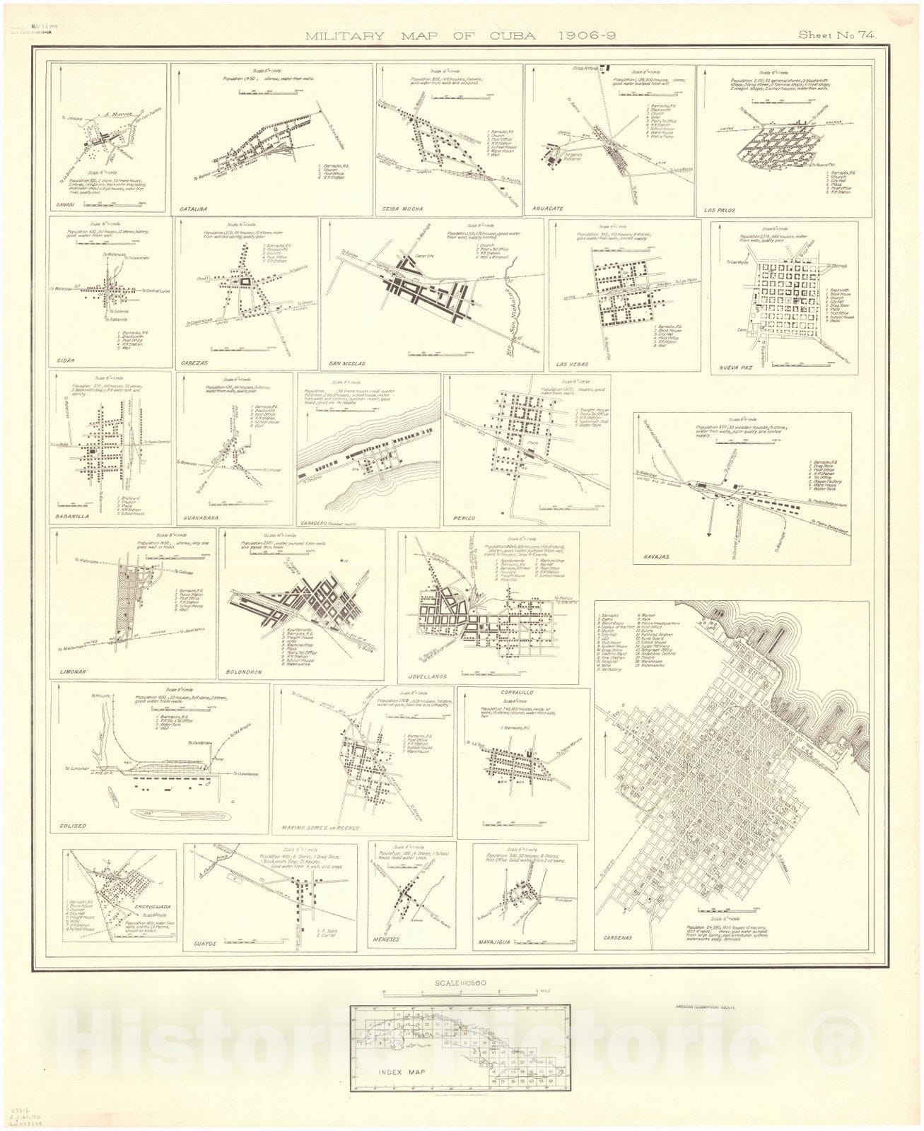 Map : Cuba 1906 9, Military map of Cuba , Antique Vintage Reproduction