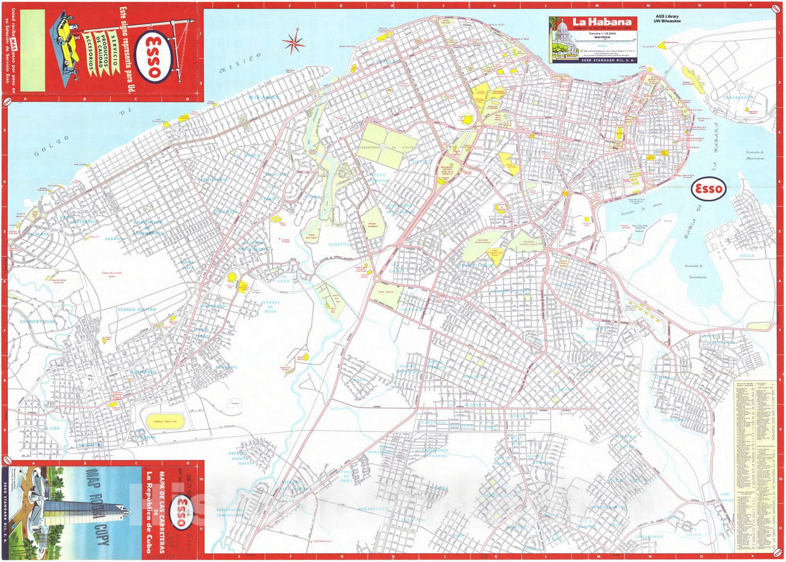 Map : Cuba 1956 1, Mapa de las carreteras de la Republica de Cuba , Antique Vintage Reproduction