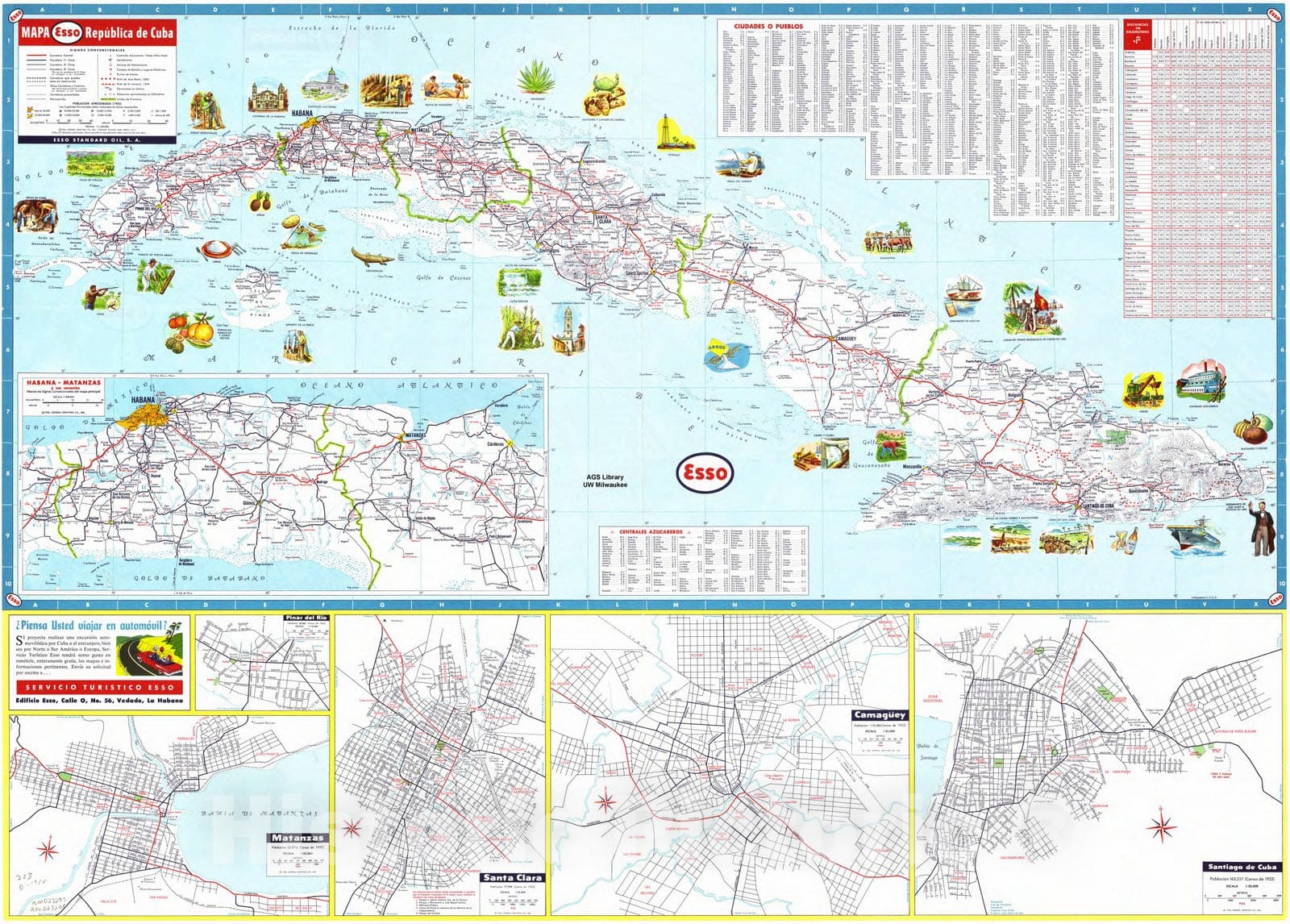 Map : Cuba 1956 2, Mapa de las carreteras de la Republica de Cuba , Antique Vintage Reproduction
