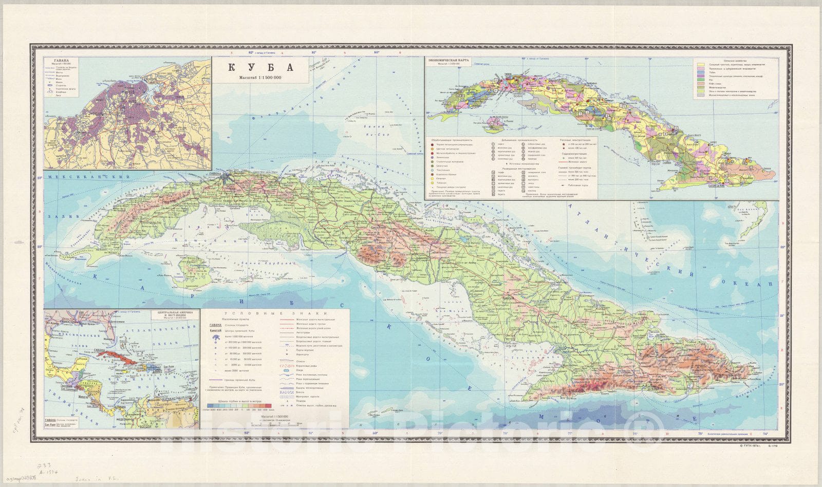 Map : Cuba 1974, Antique Vintage Reproduction