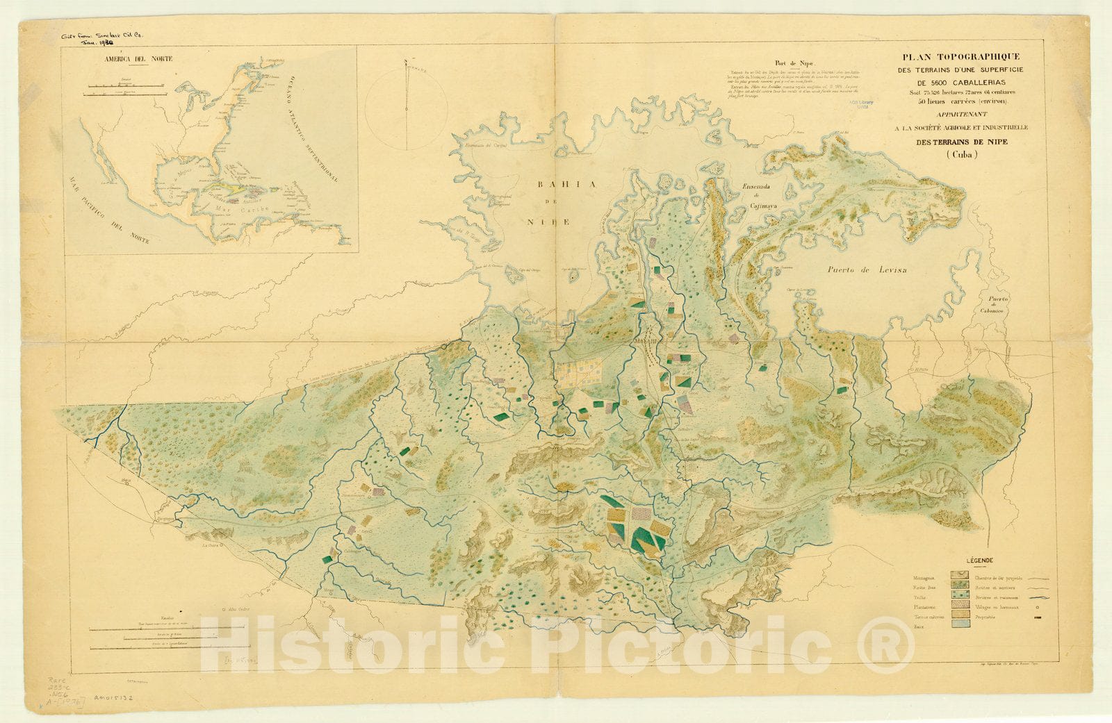 Map : Nipe Bay, Cuba 1876, Plan topographique des terrains d'une superficie de 5600 caballerias (Cuba), Antique Vintage Reproduction