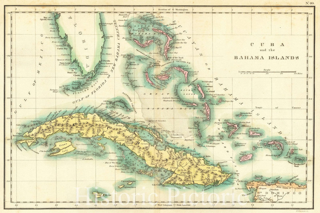 Historic Map : Geographical, Statistical and Historical Map of Cuba and the Bahama Islands, 1822, Henry Charles Carey, Vintage Wall Art