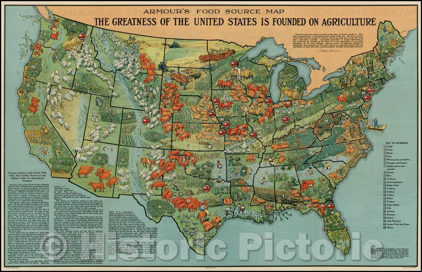 Historic Map - Armour's Food Source Map The Greatness of the United States is Founded on Agriculture, 1922, Armour & Co. v1