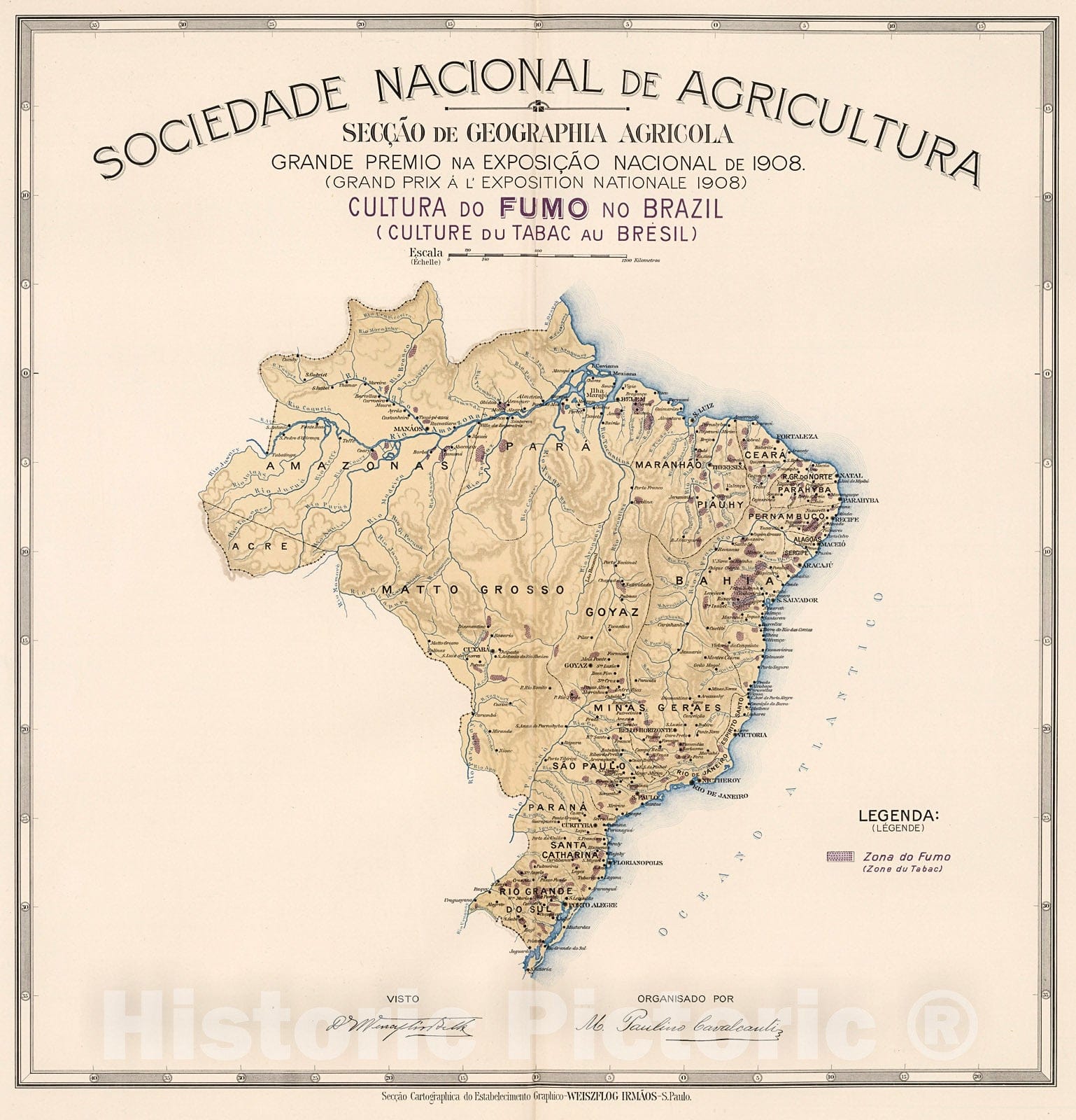Historic Map : Cultura do fumo no Brazil. (Culture du tabac au Bresil), 1908, Vintage Wall Decor