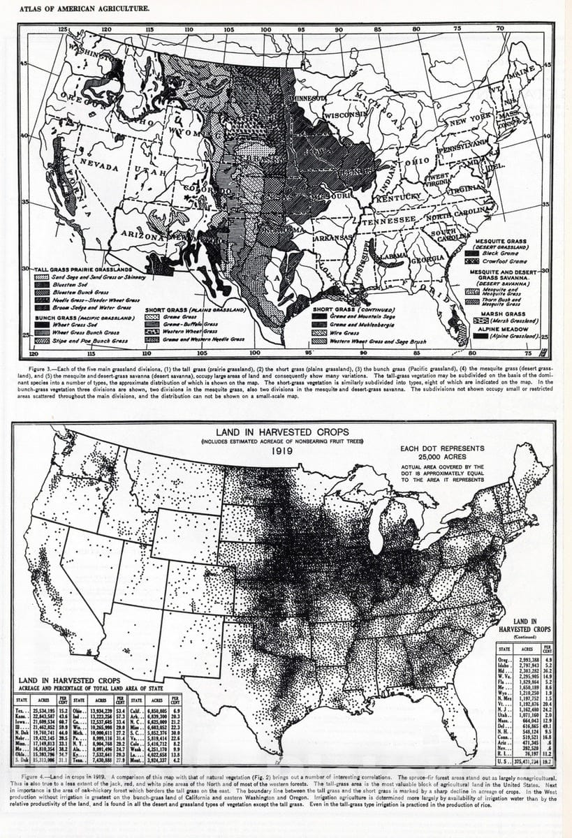 National Atlas - 1924 Grassland Divisions. Land in Crops, 1919. Atlas of American Agriculture.