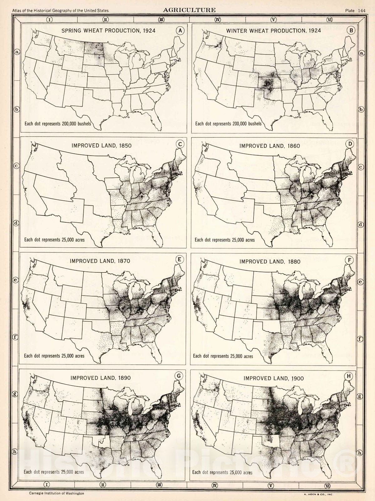 Historic Map : Plate 144. Agriculture. Wheat, 1924. Improved Land, 1850 - 1900., 1932, Vintage Wall Decor