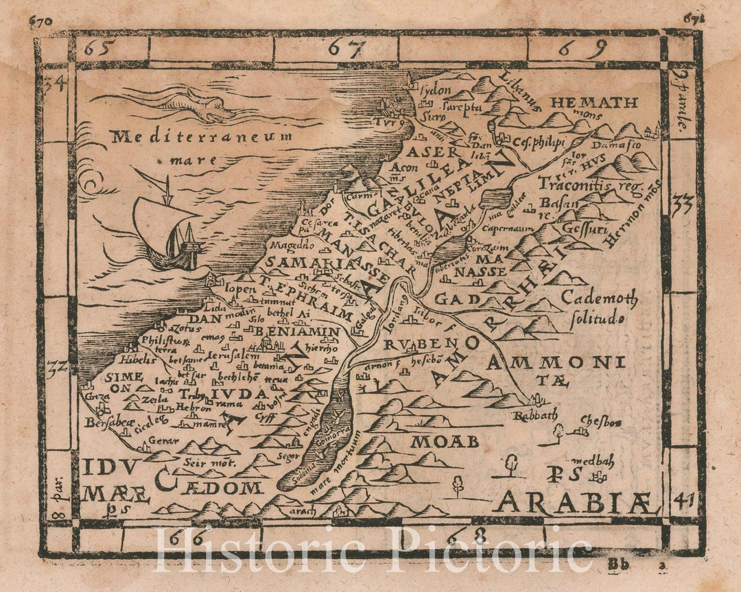 Historic Map - Holy Land andCyprus, 1561, Johann Honter - Vintage Wall Art