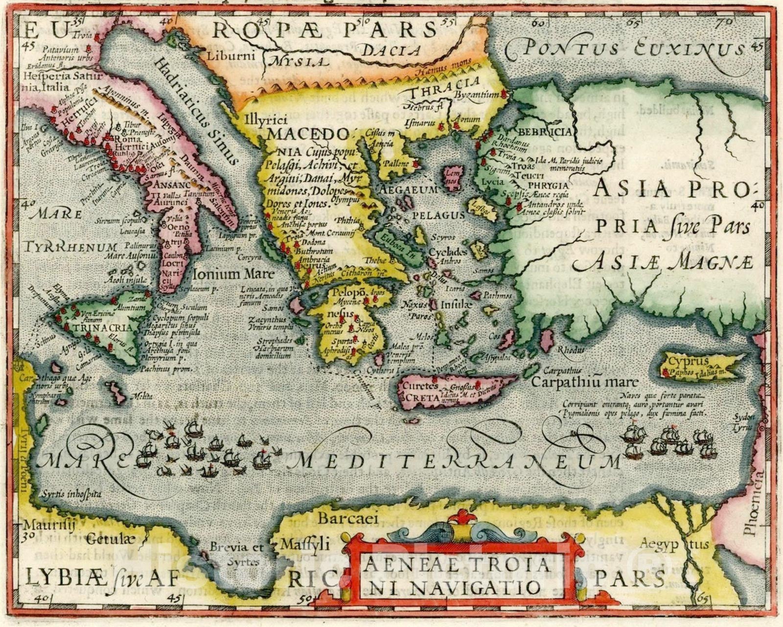 Historic Map : Aeneae Troiani Navigatio [shows Cyprus], 1625, Jodocus Hondius, Vintage Wall Art