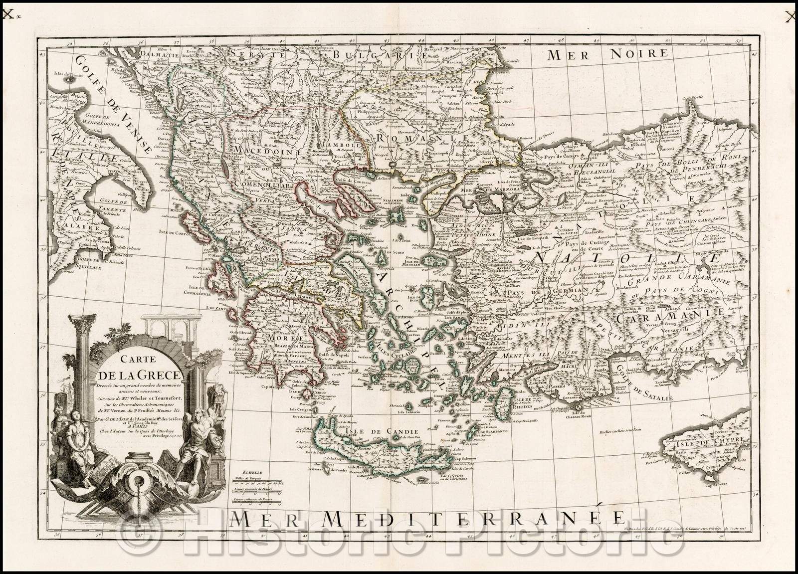• .Historic Map - Carte de la Grece Dressee sur un grand nombre de memoires anciens et nouveaux :: Greece, Turkey and Cyprus, 1745 - Vintage Wall Art
