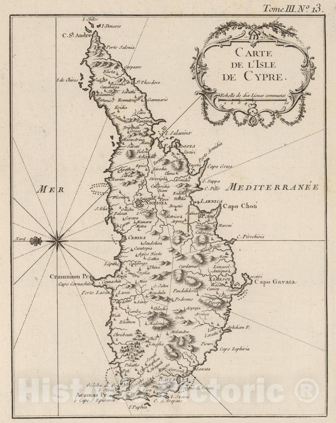 • .Historic Map : Cyprus, Mediterranean Region 1764 Carte de L'Isle de Cypre , Vintage Wall Art