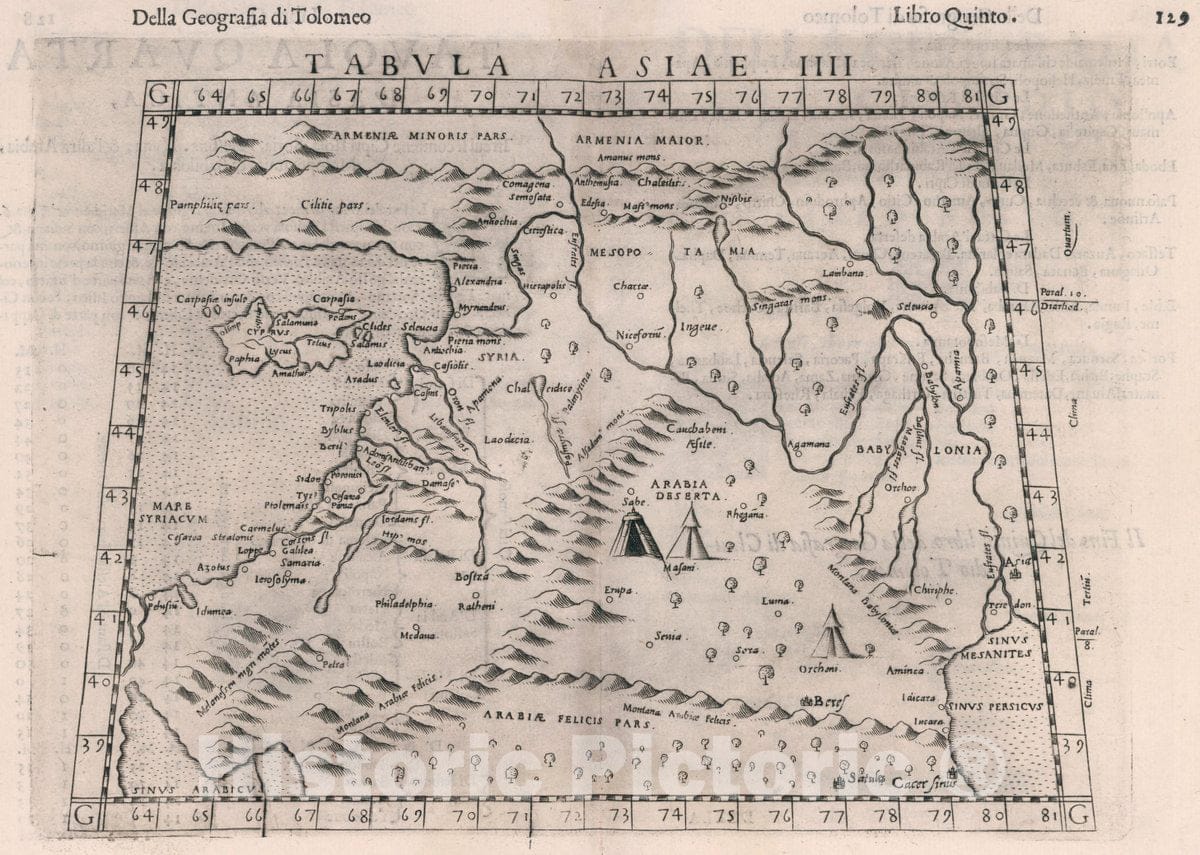 Cyprus, Middle East, Asia Tabvla Asiae IV. Della Geografia di Tolomeo. Libro Quinto, 1599 Atlas , Vintage Wall Art