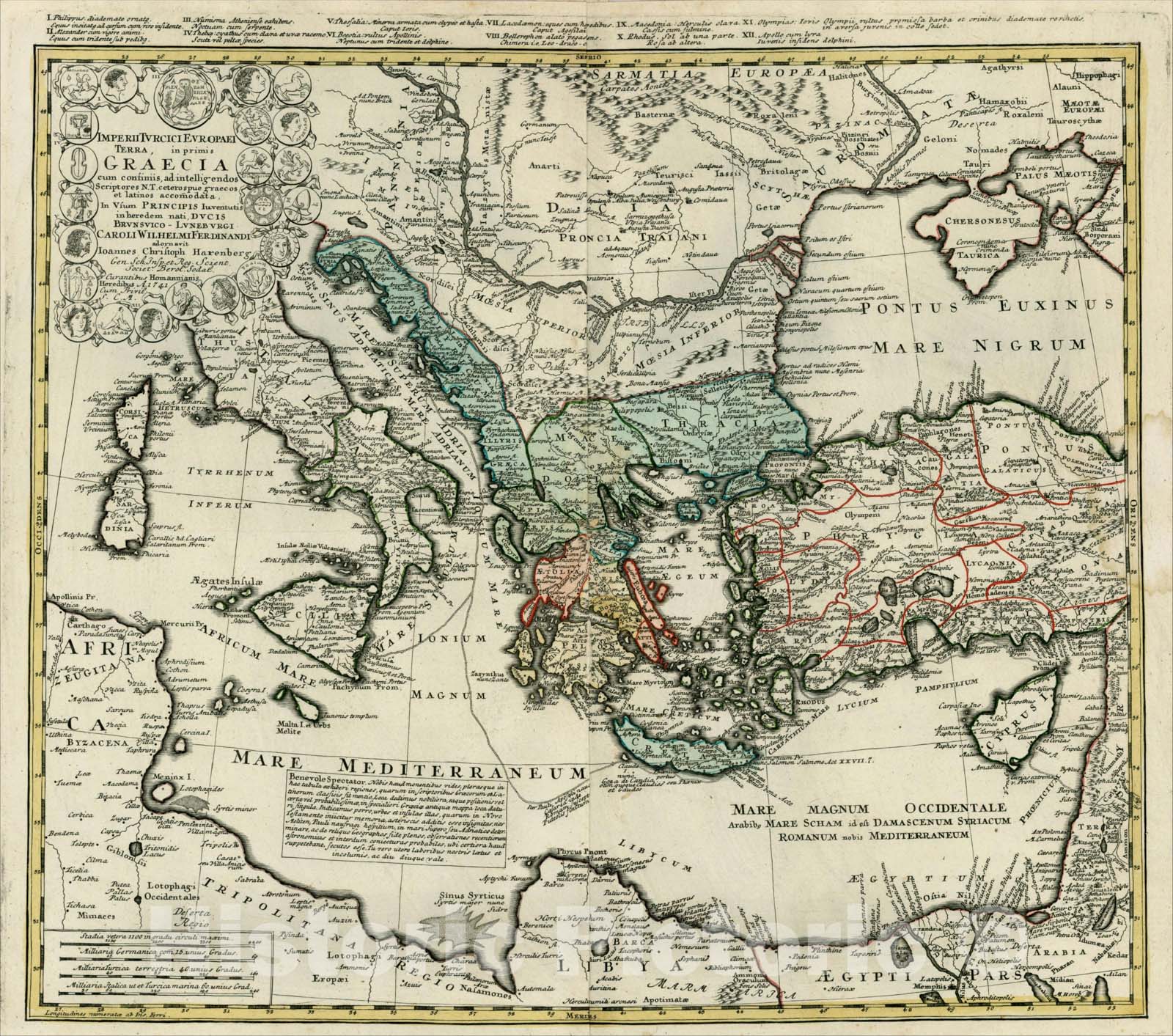 • .Historic Map : Imperii Turcici Europaei Terra in primis Graecia, 1741 (shows Cyprus), 1741, Homann Heirs, Vintage Wall Art