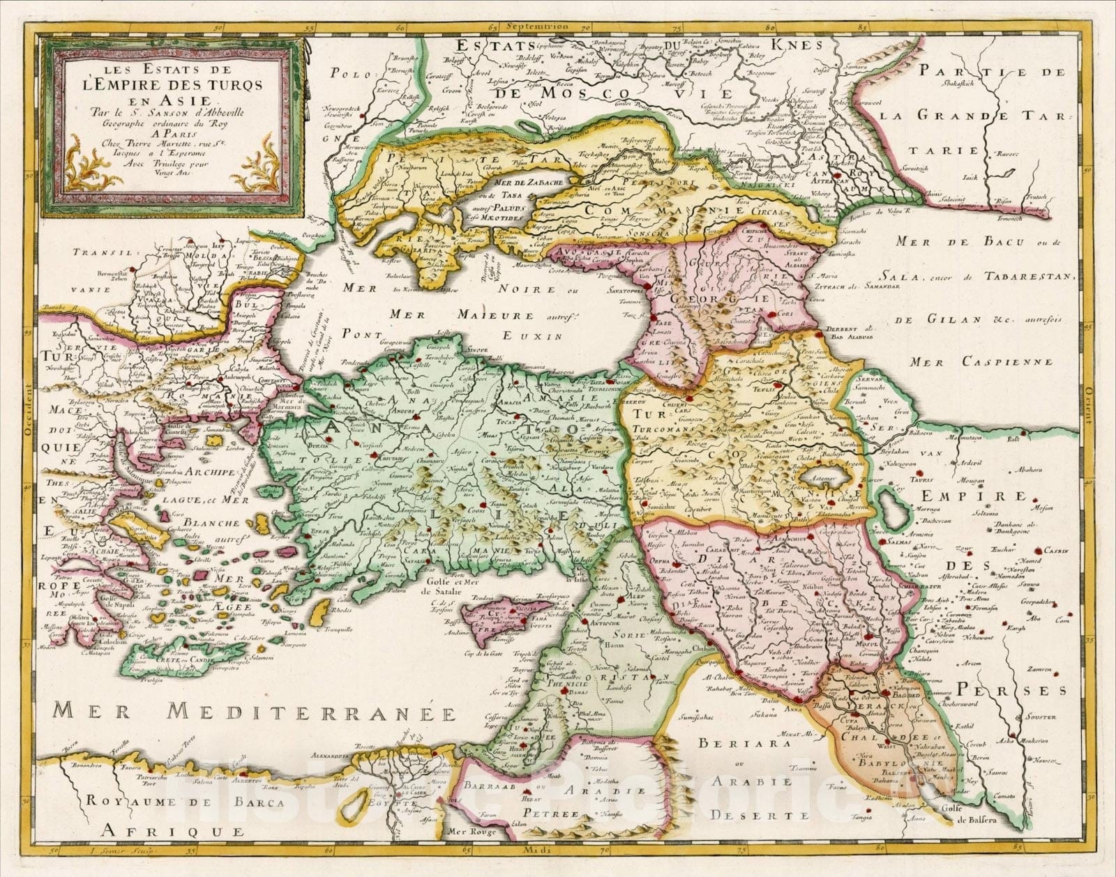 Historic Map : Les Estats De L'Empire Des Turqs En Asie, [shows Cyprus], 1650, , Vintage Wall Art