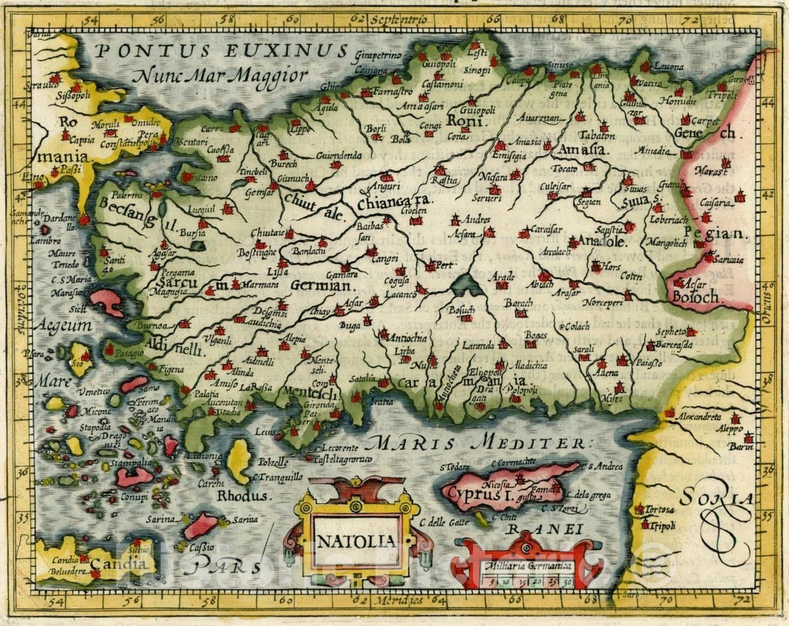 Historic Map : Natolia [with Cyprus], 1625, Jodocus Hondius, Vintage Wall Art