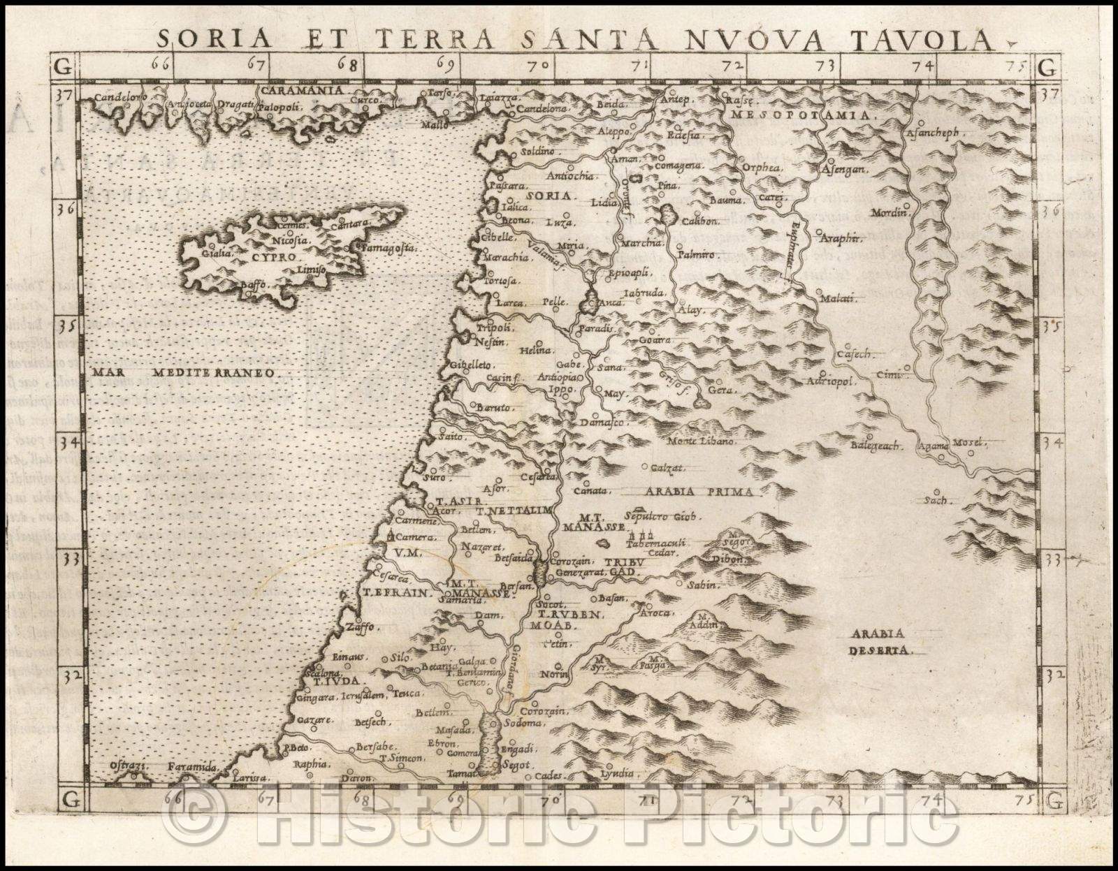 Historic Map - Soria Et Terra Santa Nuova Tavola [includes Cyprus]/Soria Et Holy Land New Table [includes Cyprus], 1561, Girolamo Ruscelli - Vintage Wall Art