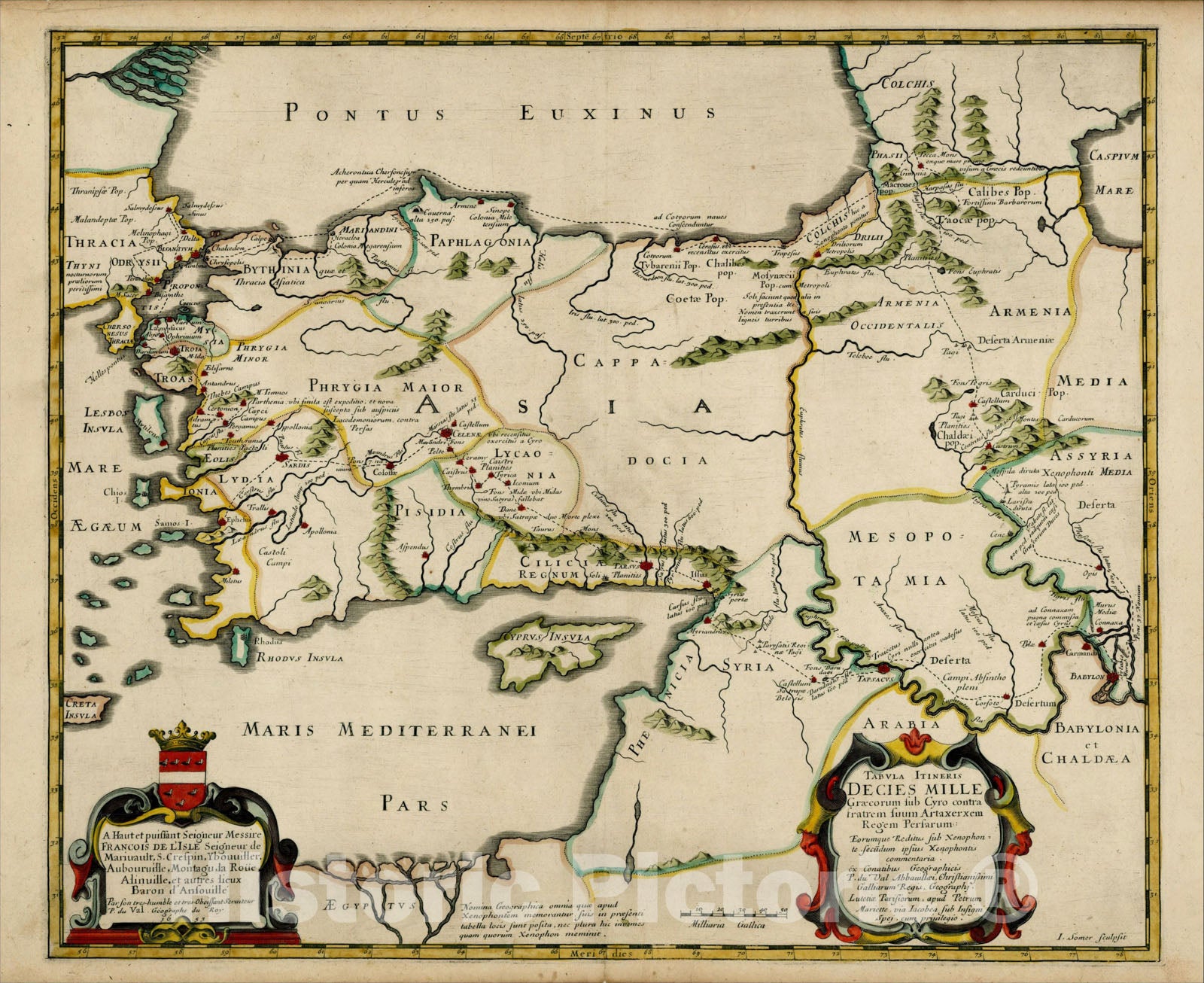 • .Historic Map : Tabula Itineraris Deciese Mille Graecorum, [shows Cyprus], 1653, Vintage Wall Art