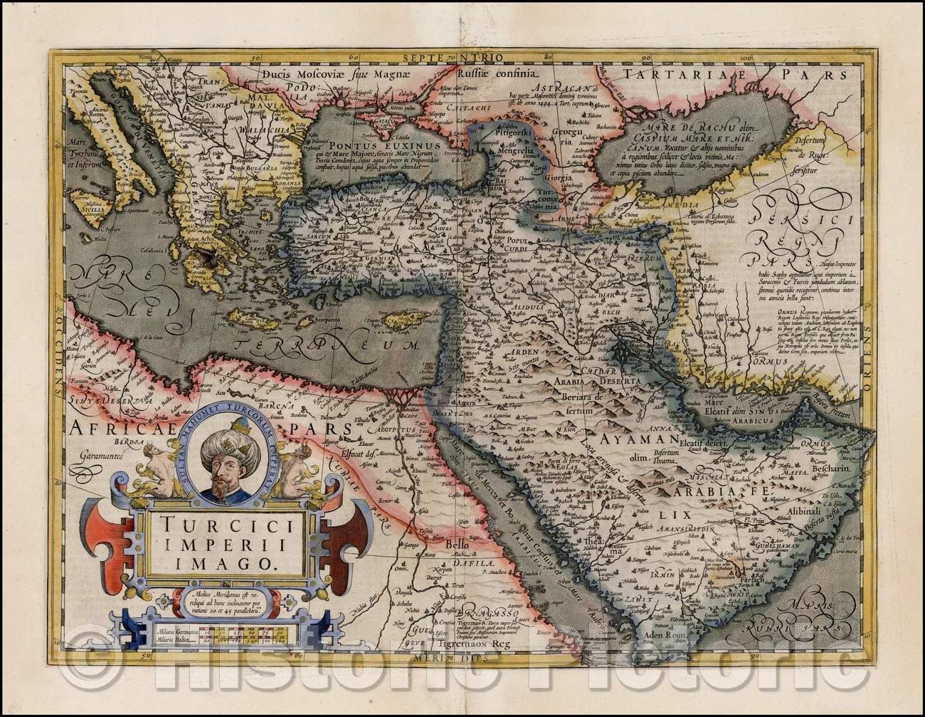 • .Historic Map - Turcici Imperii Imago shows Cyprus, 1606, Jodocus Hondius - Vintage Wall Art