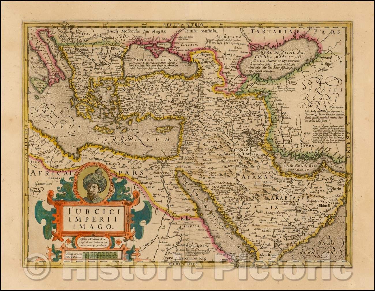 Historic Map - Turcici Imperii Imago shows Cyprus, 1610, Jodocus Hondius v1