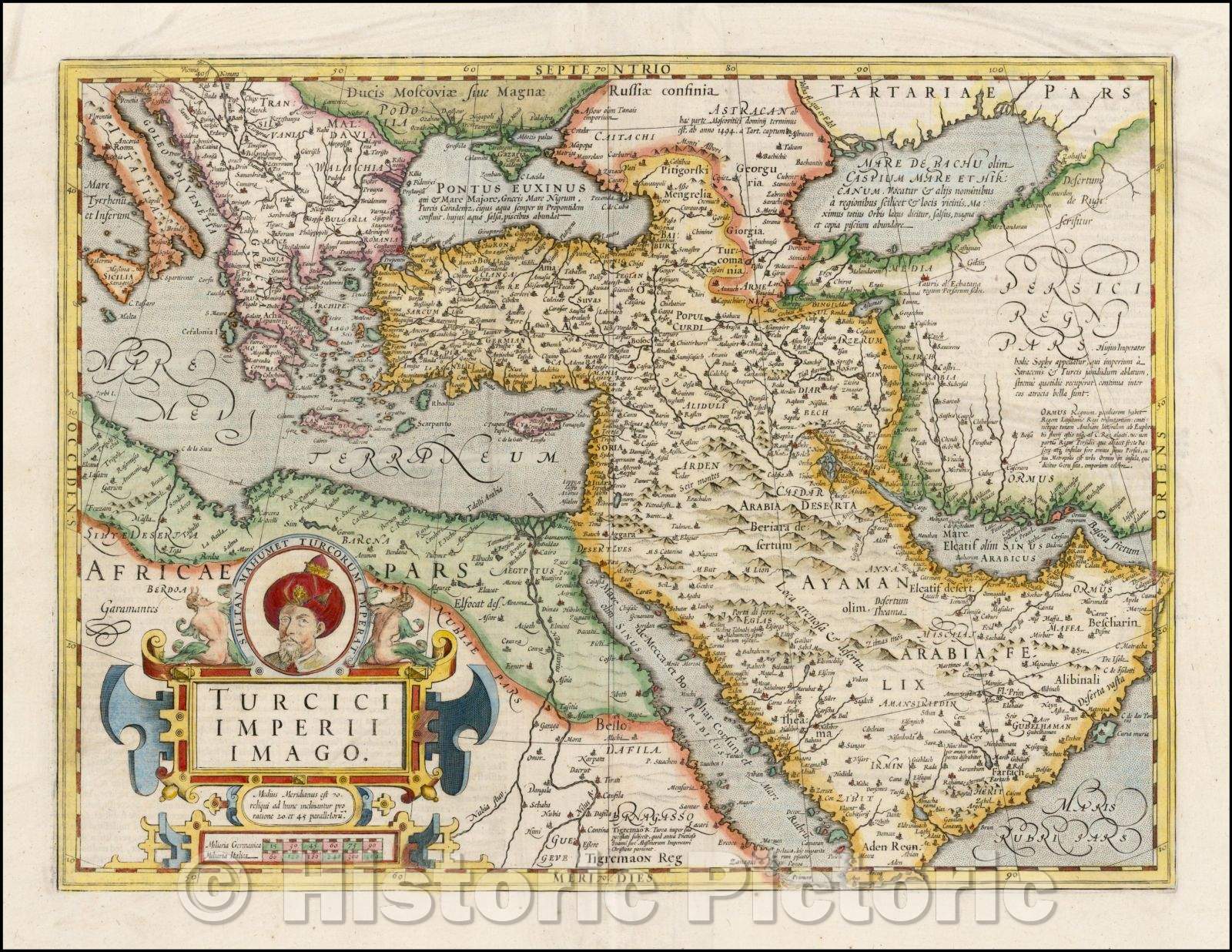 • .Historic Map - Turcici Imperii Imago shows Cyprus, 1630, Jodocus Hondius - Vintage Wall Art
