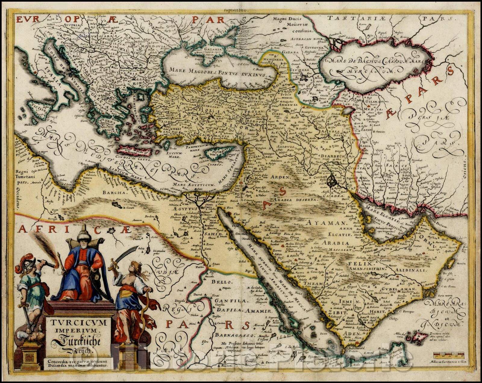 Historic Map - Turcicum Imperium. Turckiche Reich. Concordia res parvae crescunt Discordia maximae dilabuntur shows Cyprus, 1636, Matthaus Merian v1