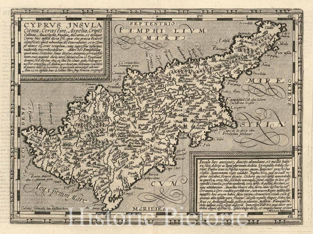 Historic Map - Cyprus Insula laeta choris blandorum et Mater amorum, 1650, Jan Jansson v2