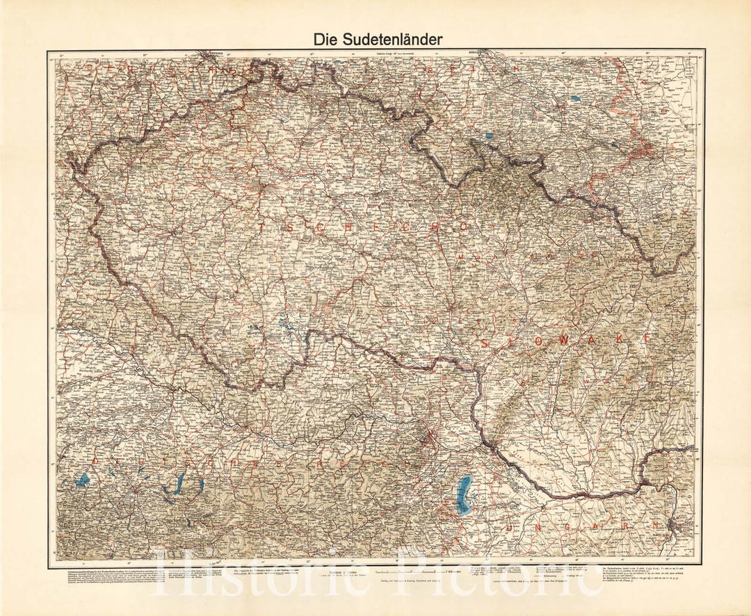 Map : Sudetenland (Czech Republic) 1938, Die Sudetenlander , Antique Vintage Reproduction
