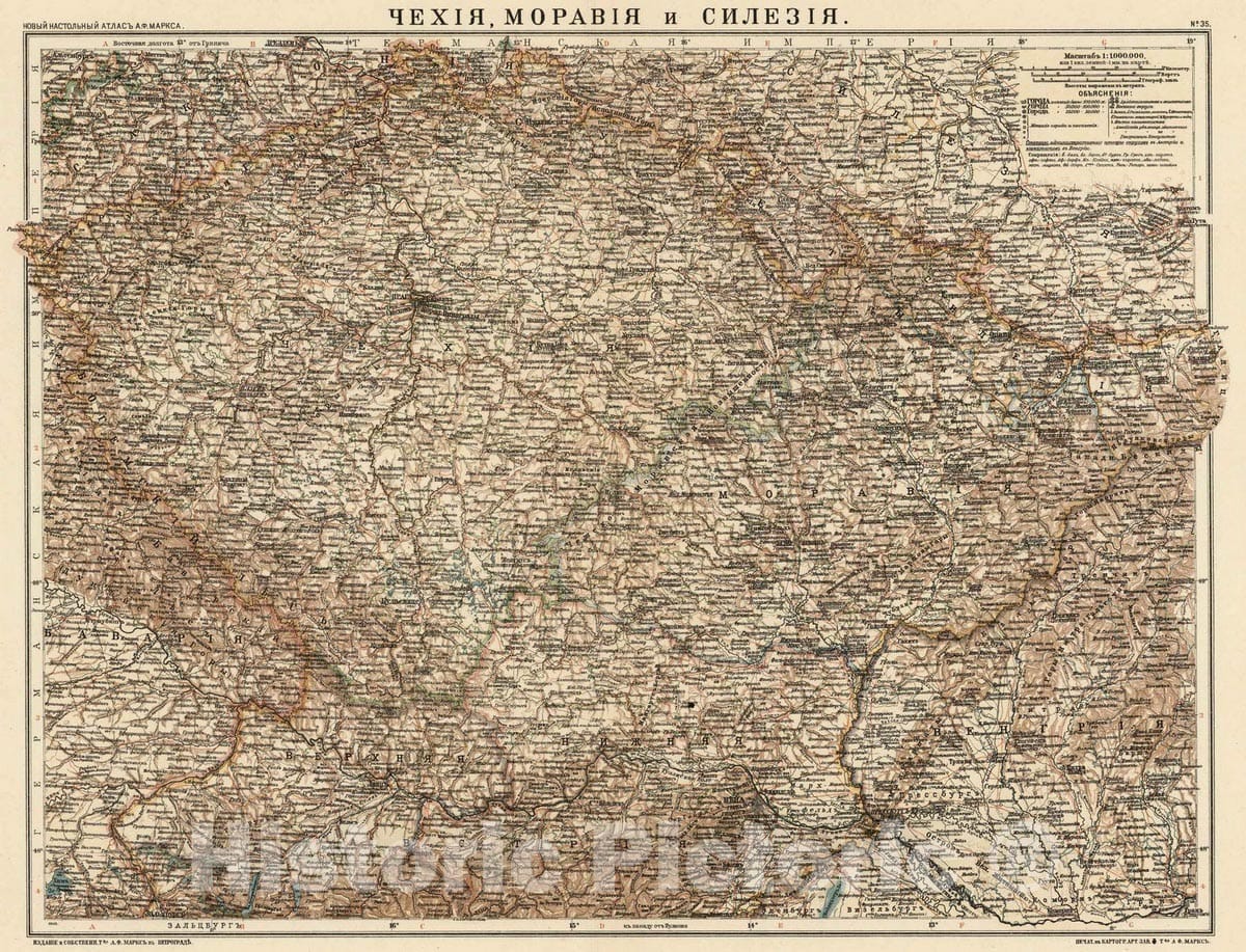 Historic Map : Czech Republic, 1909 No.35. Chekhiia, Moraviia i Silezija. 1909 , Vintage Wall Art