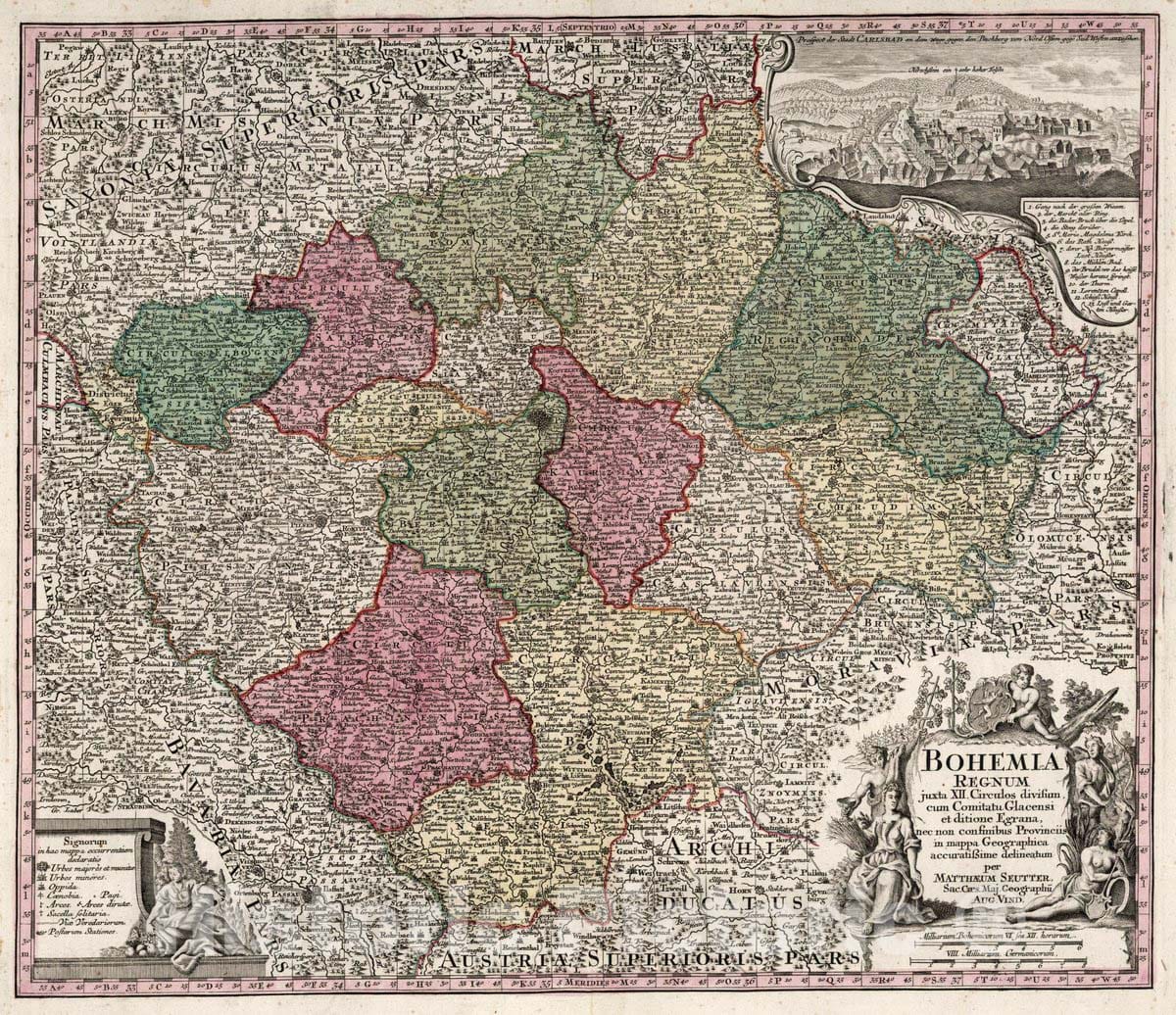 Czech Republic, 22. Bohemia Regnum juxta XII Circulos divisum, 1720 Atlas , Vintage Wall Art