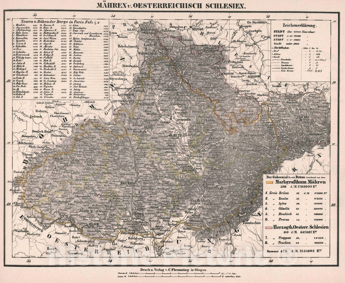 Historic Map : Czech Republic, Maehren u. Oesterreichisch Schlesien, 1847 Atlas , Vintage Wall Art