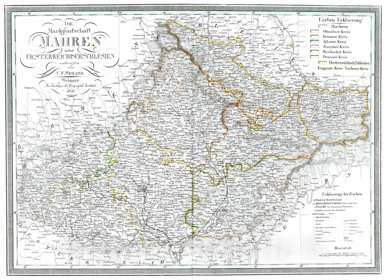 • .Historic Map : Czech Republic, Moravia 1840 Die Markgrafschaft Maehren. Margraviate of Moravia. , Vintage Wall Art