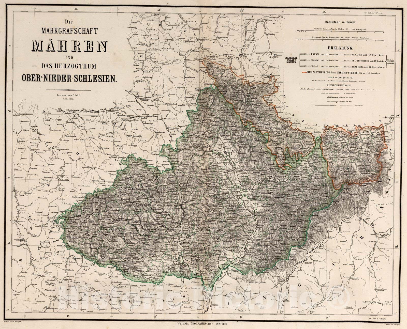 • .Historic Map : Czech Republic,Die Markgrafschaft Mahren und das Herzogthum Ober- Nieder-Schlesien 1866 , Vintage Wall Art