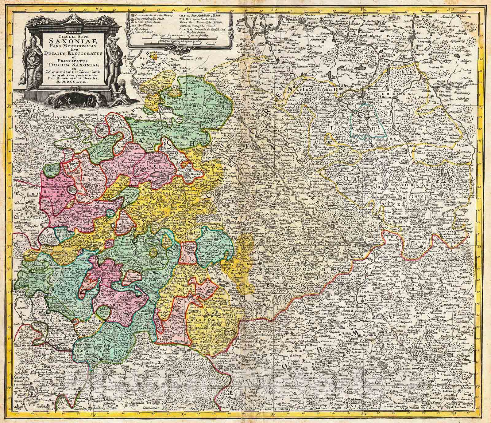 • Historic Map : Homann Heirs Map of Saxony, Germany, and The Czech Republic , 1757, Vintage Wall Art